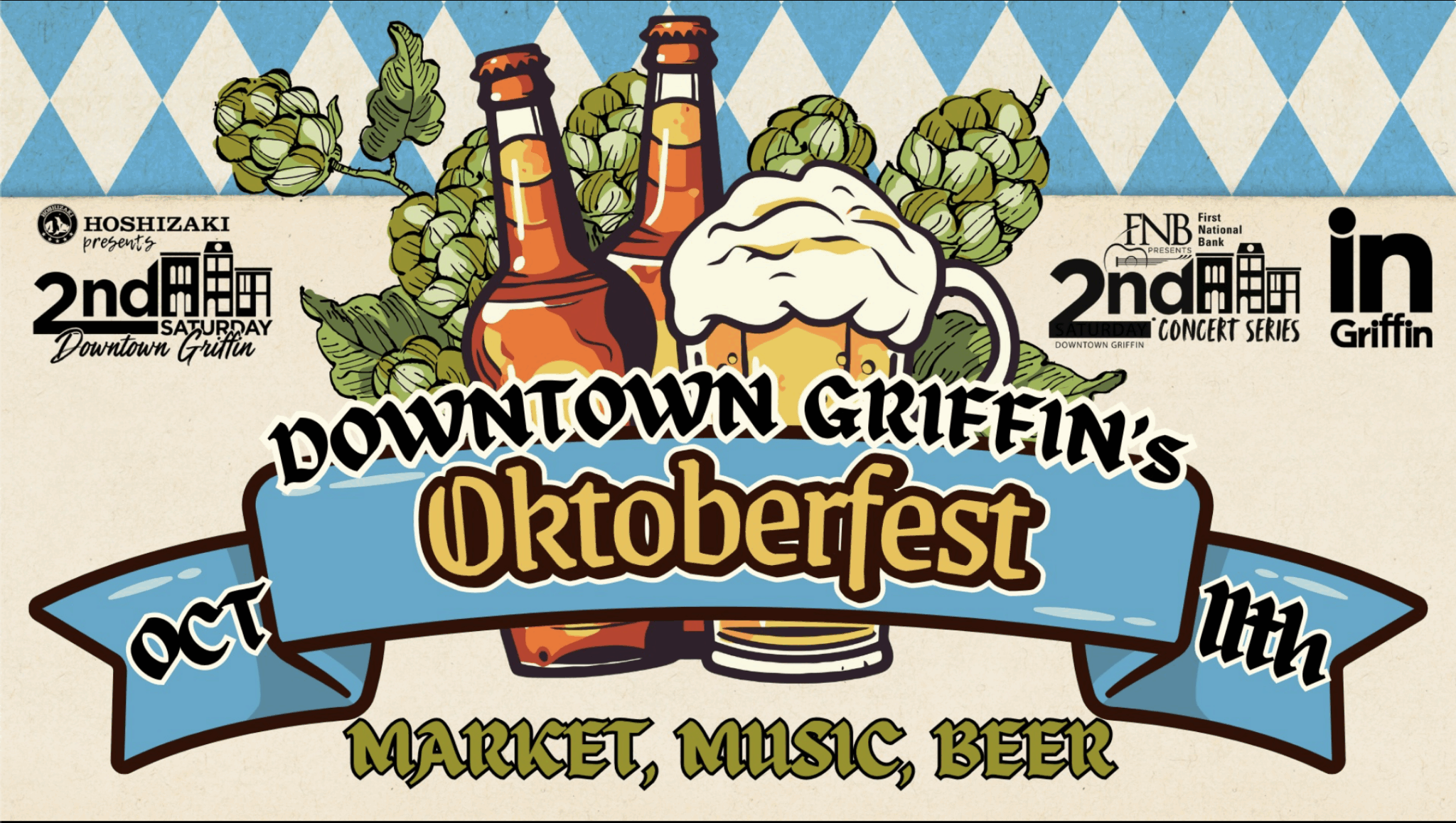 Join us in Downtown Griffin for 2nd Saturday Oktoberfest, presented by Hoshizaki America! Spend a festive fall afternoon exploring our vibrant downtown filled with art, crafts, food, music, and more. This family friendly event captures the spirit of the season and offers something for everyone to enjoy.